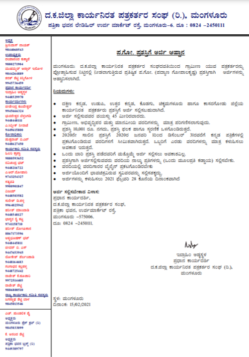 ಪ.ಗೋ. ಪ್ರಶಸ್ತಿಗೆ ಅರ್ಜಿ ಆಹ್ವಾನ